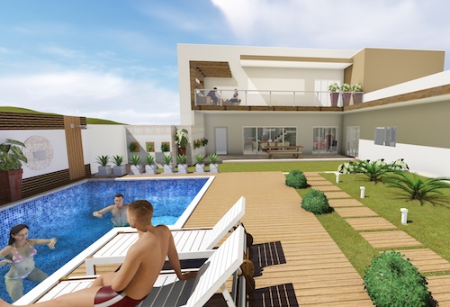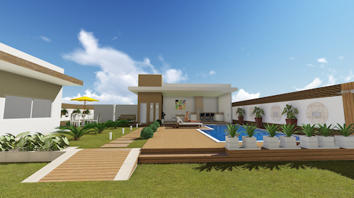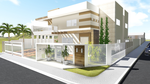 Fachada simplesmente incrível com uma área externa inusitada, conjunto lindo!
